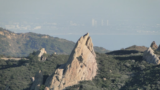 Bulldog road enables this sense of solitude by traveling through a rarely-visited stretch of Malibu Creek State Park. It branches off of the main stretch of Crags Road from the back entrance to the park, located in the community of Malibou Lake. After a brief amble by the side of a creek, the trail, an old fire road, begins to climb in earnest. The climbing is rarely difficult, save for the last stretch which always seems determined to test my stamina. The views grow increasingly sublime as you slowly gain sight of the Goat Buttes, Saddle Peak, the San Fernando Valley, Ladyface Mountain, the Simi Hills, and the San Gabriel Mountains, ultimately ending with a view of the Ocean and West Los Angeles.