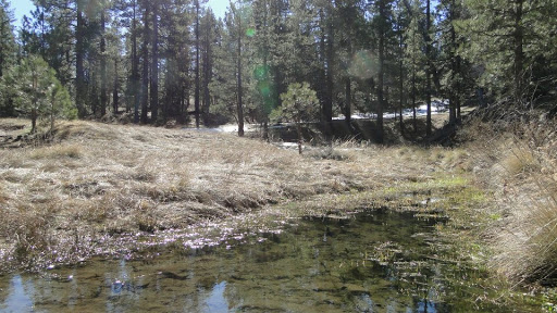 The pro is that, no matter which way you go, you are rewarded with beautiful views from every angle of the meadow to your left and the forest to your right. The open, airy pine forests here are dryer and less dense than the majestic mixed-conifer forests to the north, some as close as Palomar, but the scent of sun-baked pine needles, patches of newly grown grass carpeting the forest floor, gently trickling streams, shafts of light filtering through the needle-laced branches, and whispers of wind through the crowns of the trees make this forest lovely, and often enchanting. Furthermore, as this was a winter hike and all of the grasses and shrubs were dead and brown, I imagine this trail is absolutely gorgeous when Spring kicks in and the grasses turn green and the flowers begin to bloom.