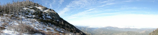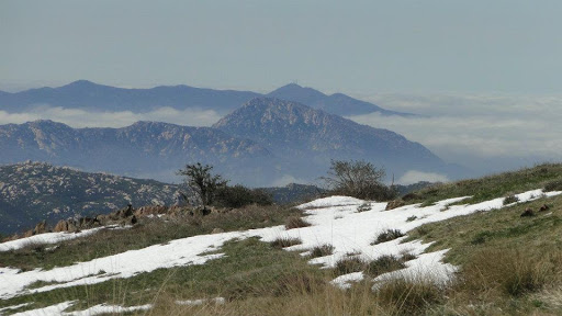 The peak, West Mesa, and East Mesa easily highlight this trip. Any one of those areas would easily qualify for a great full-day hike. The peak has fantastic views, including the usual mountains (Gorgonio, Jacinto, Baldy, Santiago, Palomar, etc), but as well of San Diego, which on this day was obscurred by a sea of clouds. West Mesa also has great views, but the sea of green, gentle streams, and recovering oaks are what make it truly lovely. East Mesa impressed the most, particularly since it felt the most like an escape from the typical chaparral and oak scene so omnipresent in SoCal.