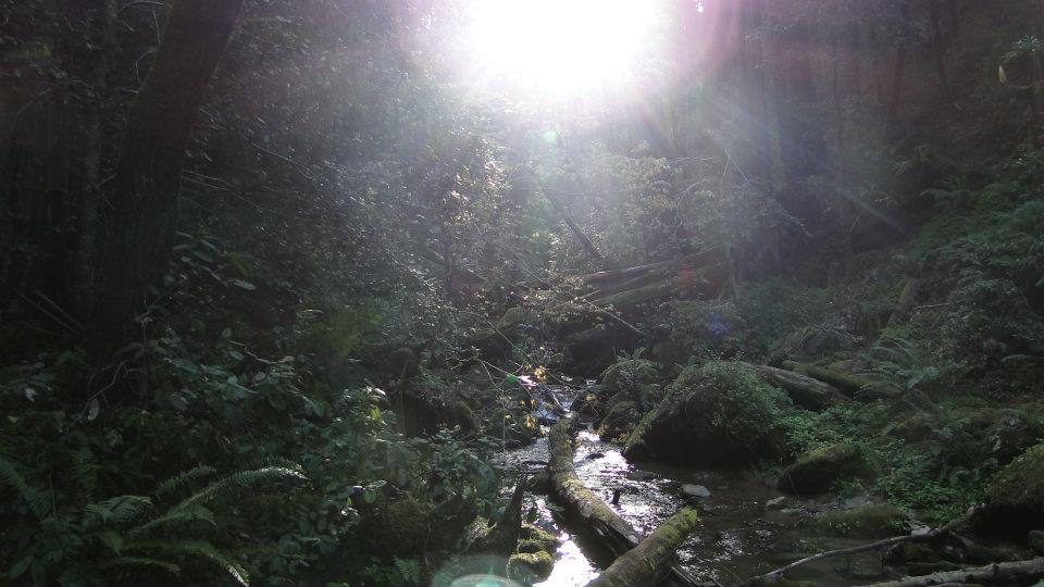 I left L.A. at 4:00 in the morning to head up to Big Basin, which is located an 30 minutes north of Santa Cruz. Along the way, I received this amusing shout-out from my friend Adam, who does a morning radio show on a central coast radio station. I arrived at Waddell Creek State Beach, and after a half-hour’s walking around to find a park ranger, I parked the car, strapped on the pack, and headed in.