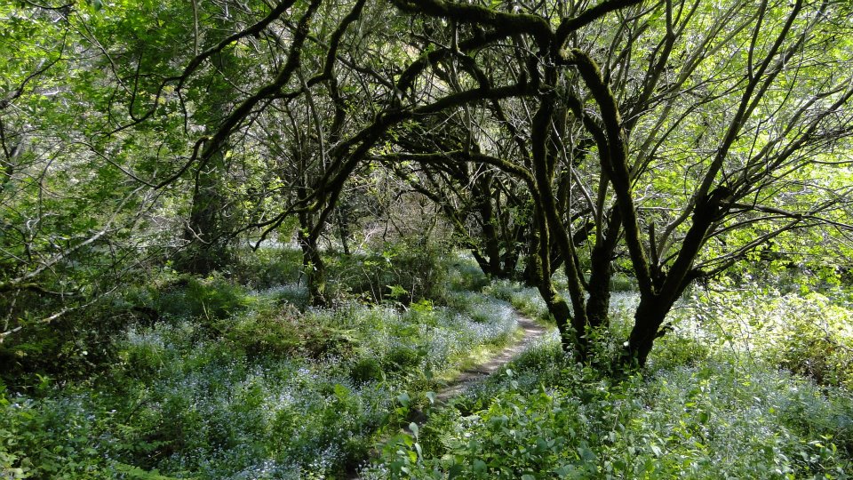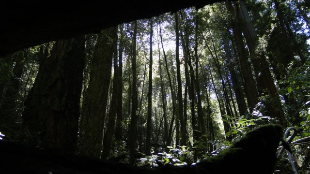 The trail gains a little bit of altitude, which opens up a great view of a small, marshy valley carved out by Waddell Creek. Moss-draped knobcone pines and Douglas firs (the much larger brother of the SoCal native bigcone Douglas fir, which is distinguished only by larger cone and smaller size) tower over the trail, which begins a gentle ascent into the low, but heavily vegetated Santa Cruz Mountains.