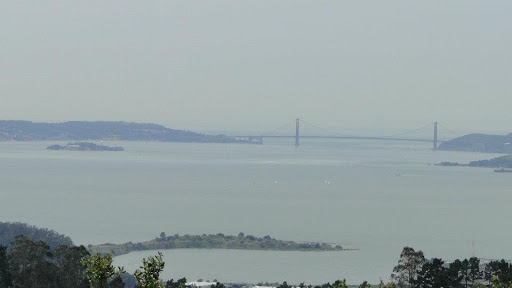 Views gradually opened up as we gained elevation. The ridge that separates Berkeley from the park gradually receded, revealing ever-widening views of the mountains to the west, along with bits of San Francisco Bay. The trail joins Nimitz Way at this point and swings south along a paved road that was heavy with mountain bike and runner traffic.