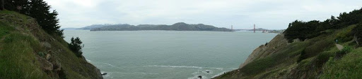 Aside from my whims though, Golden Gate Park is a great way to sight-see in the city. On a 7.5 mile hike, Kelly and I saw most of the length of Golden Gate Park (the largest urban park in the country), the deYoung museum (the outside), the California Academy of the Arts (the outside), the music concourse, the Japanese Tea Garden, Stow Lake and Strawberry Hill, the windmill, Sutro Heights, Sutro Baths, Land’s End, and many fine views, including the Golden Gate Bridge, downtown, and Sutro Tower. It’s not often that you can find hikes in nature that offer so many memorable landmarks, let alone in the city.