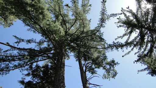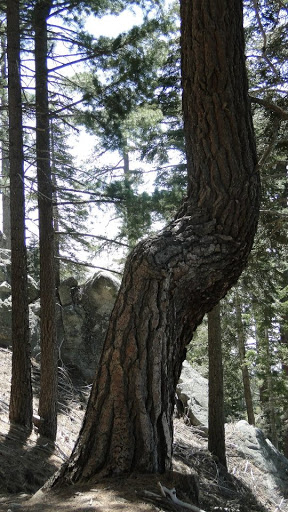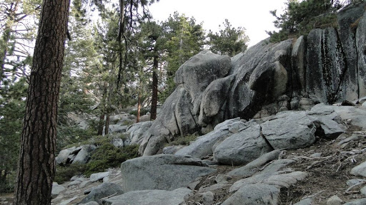 The trail begins climbing immediately and continues to do so relentlessly for the next 3.3 miles. The oaks and cedars gradually disappeared as white fir and a predominance of Ponderosa pine replaced it. Coupled with the liberal sprinklings of granitic boulders, the forest takes on a character that is decidely reminiscent of the western Sierra Nevadas.