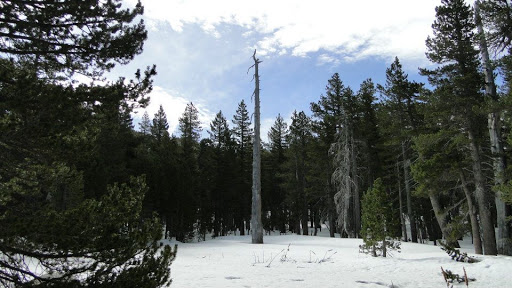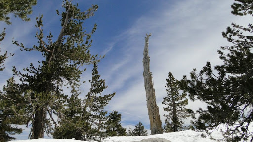 At about 8,000 feet on an increasingly north-facing slope, snow began to appear in patches. My feelings about snow have become deeply ambivalent at this point. On one hand, I appreciate its rareness in Southern California, as well as its ability to magically transform a landscape into a silent, shrouded wonderland. On the other hand, hiking in snow is a massive pain in the ass. Normally, it simply makes your feet wet and makes you expend twice as much effort to move forward. However, on a trail traveling through a boulder-strewn, densely-forested single-track trail, snow quickly evolved from a nuisance into a serious problem.