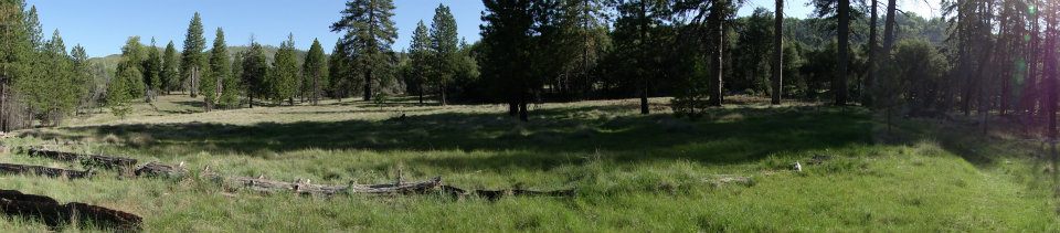 And then, it got even better. The trail emerged from the forest to a long, pine-fringed meadow. Wild Turkeys gobbled across the grass, and massive ponderosa pines towered above the waving grass. I followed the creek for a while, and came across an old stone wier (dam) that was used in an attempt to determine if Doane Creek could supply hydroelectric power. The creek didn’t have enough flow, but the dam and an old stone structure are still there. This is a great place to take your shoes off and let the current caress your feet.