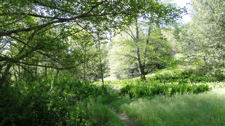 Also, many of the plants here were showing off in a serious way. Ceanothus was in full bloom, lighting up several sections of trail with bright, blue flowers and giving off a honey-sweet scent. A sage-like plant emits a musky scent that smells like pot the first time you catch it. Pacific Dogwood showed off its massive white blooms. Corn lilly leaves stood in thick patches in the meadows. Bracken ferns were beginning the carpet the hillsides, and beneath it all were many varieties of green grass.