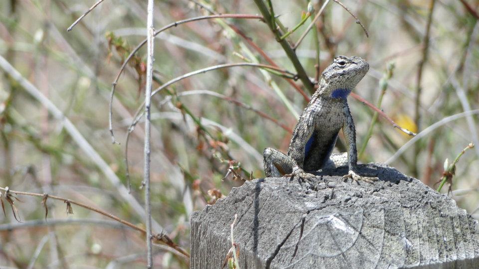 Critters: A showy lizard, quail, a rattlesnake, a swarm of bees
