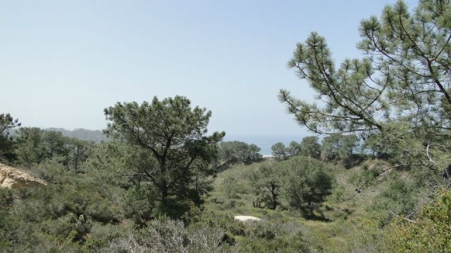 There are two trail options here, and both are solid, but brief excursion. The A trail climbs the eastern ridge in the reserve and emerges atop a wooded ridge marked by interesting sandstone erosion. The trail continues to a school and a park, but the best place to stop is at a small grove of Torreys. Here you can sit underneath a tree and enjoy the fresh sea breeze that makes even a warm day comfortable.