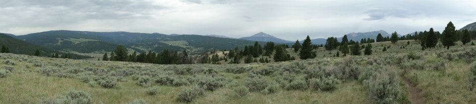 Eventually, we gained a ridge and saw Gallatin Canyon open up below us. We could see and hear the river roaring in a long, meandering ribbon across the valley floor. Directly below us, a group of horseback riders moved slowly across a long, flat plain. Lone Mountain’s summit rose about the hills to the west. Behind us, the meadow spread out below us until it met a tree line that contoured along the side of a mountain.