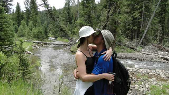 Cheerfully, we turned back and began a leisurely return trip, during which we stopped for pictures to further celebrate our engagement, generous gulps of water, and more light, easy camaraderie. Before long, the trail made it’s way to Porcupine Creek, which is followed by a well-maintained trail. This trail goes for miles and miles in an easterly direction, but, as we approached 4 miles, we knew it would soon be time to call it a day.