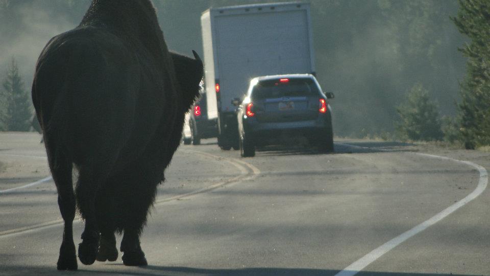 – We got stuck on the road behind a heard of bison