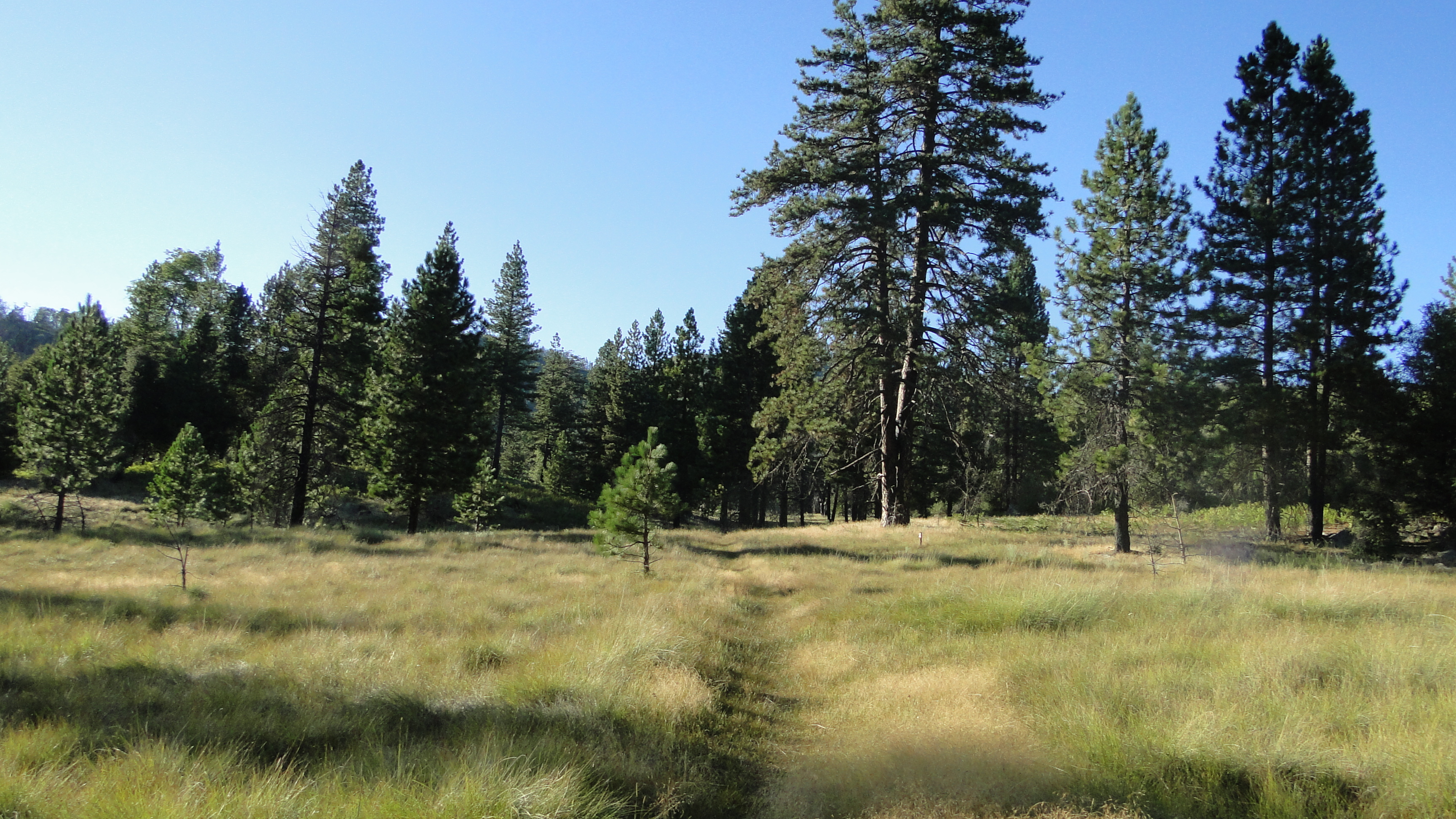 In Lower Doane Valley, scattered Jeffrey and Ponderosa pines dominate over swaying grasses and ferns. A fire swept through here in 2007, and yet most of the valley escaped the damage without too much damage. The main damage occurred in adjoining French Valley, which is now closed off to let the vegetation regenerate.