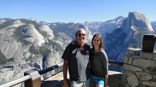 Kelly, her dad Dave, her uncle Ron, and her cousins Colleen and Michelle, and I took a shuttle bus up to Glacier Point from Yosemite Lodge. Along the way, we were treated to the drolly-flavored cheese of a tour-guide who sounded like an NPR announcer running at 60% speed. The talk, which focused on the history of Yosemite, was informative, although Dave may have pulled a few muscles from rolling his eyes so much.