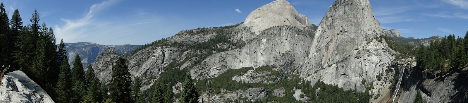 At Nevada Falls, we took the John Muir Trail instead of the famous Mist Trail since neither Kelly and I had any interest in fooling around on a treacherous staircase hewn out of granite. This may have been one of the most enjoyable stretches of the trail, as it clung to the cliffside and featured gorgeous views of the back of Half Dome, Liberty Cap, and Nevada Falls. We sat down for lunch at the edge of the cliff, and marveled in the views, the cool mountain air, and the relative solitude.