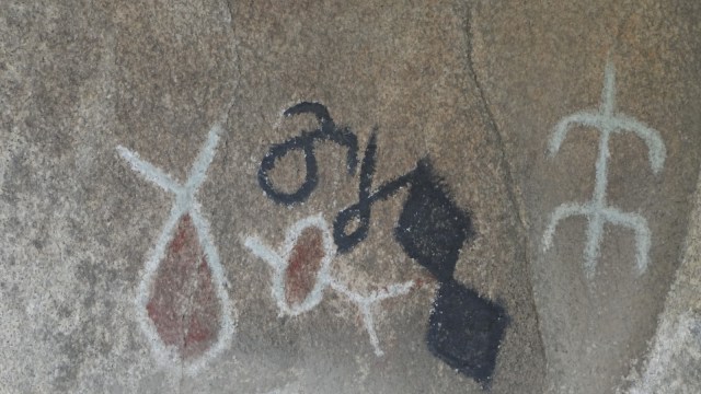 The dam is not the only man-made attraction on the Barker Dam Loop Trail. On the western end of the trail within a small valley similar to Hidden Valley, a small cave features a number of ancient petroglyphs. These petroglyphs are very well preserved, and wandering upon them is a wonderful experience. It is, perhaps, an even better experience than seeing a resevoir in the middle of the desert, since this is a bit of the scant remaining evidence of the local people who once called this region home.