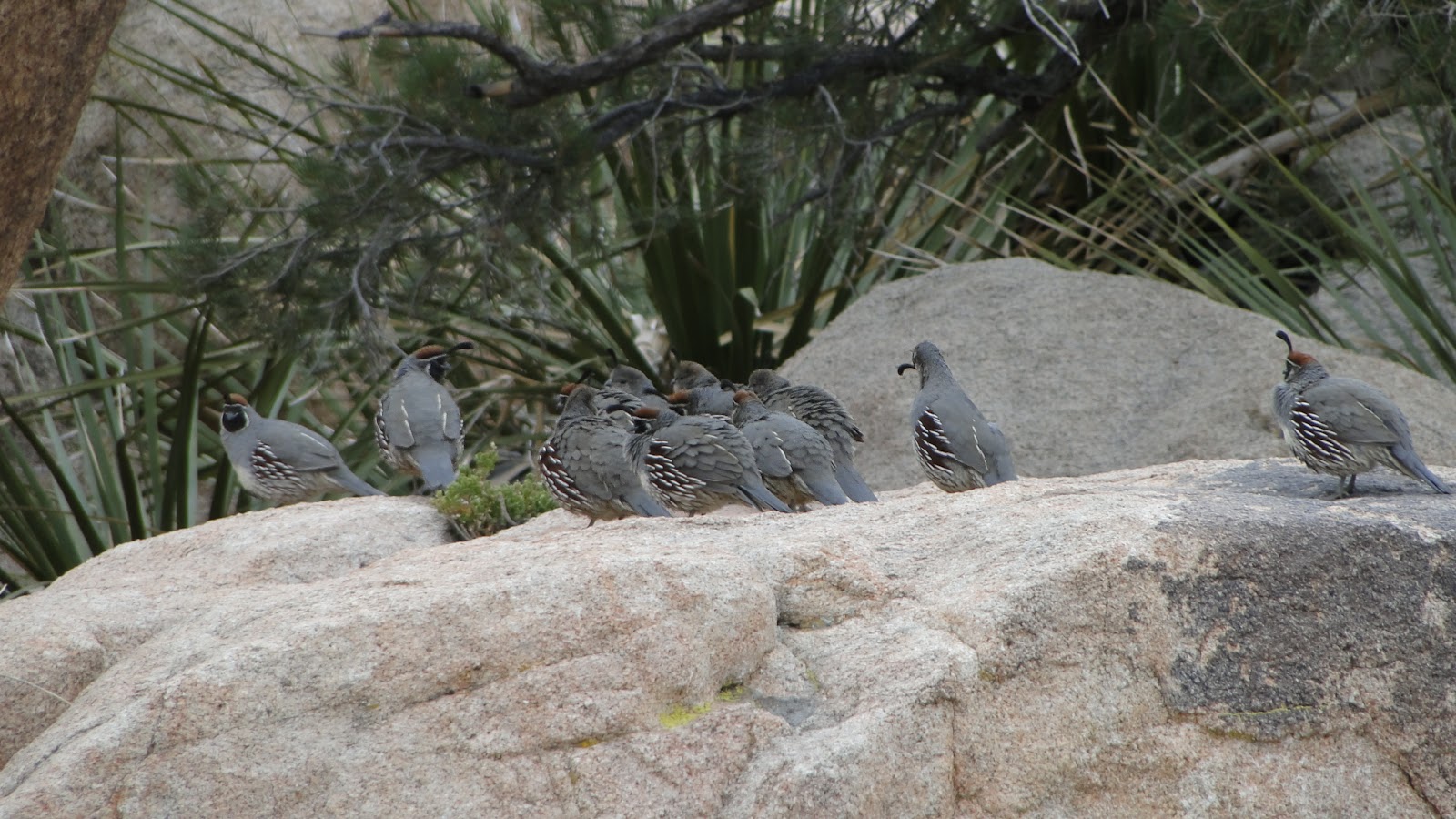 These trees occupy the cracks in boulders because these cracks create channels for water to flow. Where water pools and collects, pinyon pines will grow. They don’t grow tall or particularly straight like most pines. Instead, they grow in the same twisted shapes of oaks and sycamores, often with multiple trunks. These trees provide food for animals, which are surprisingly abundant here, just as humans once were before settlers came to mine the hills.