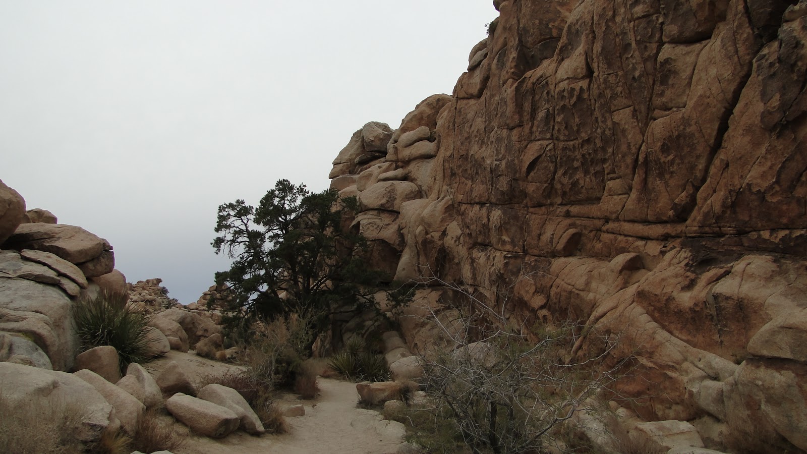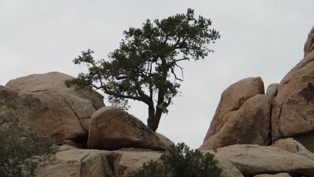 What survives is a relic population of pinyon pines that cling to crevices in the famous boulder piles of Joshua Tree. Where these boulder piles stand, one will also find a sparse pine woodland. In the flat valleys and basins, the less-thirsty Joshua Tree dominates. However, Hidden Valley, which is a flat space secluded by canyon walls of eroding granite, hides on of the best examples of this woodland.