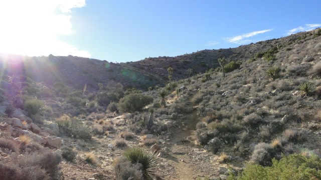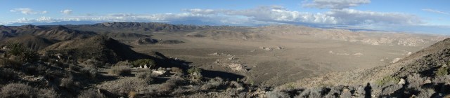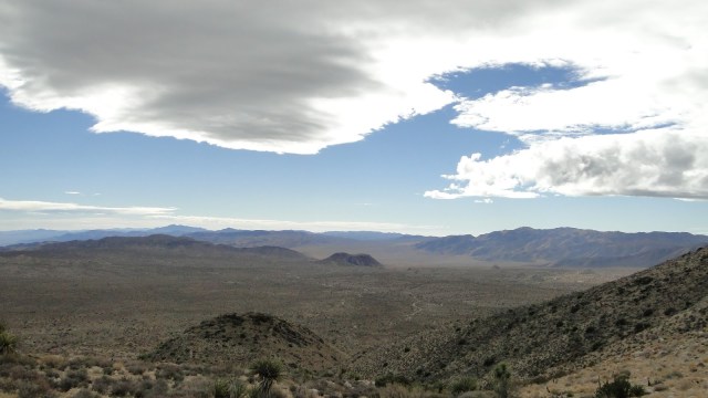 I struggled to understand why a guy would just gain 1,000′ in under 1.5 miles, only to turn around and walk away without seeming to soak in the accomplishment and the reward. Looking west, one could see mountains, Queen Valley and the Wonderland of Rocks, and most of the towns in Yucca Valley. Looking south and north were desert peaks for days. Looking east was the vast desert wasteland known as Pinto Basin. Sure, it’s a pretty beige view, but the vastness of it all seems as if it would command more attention.