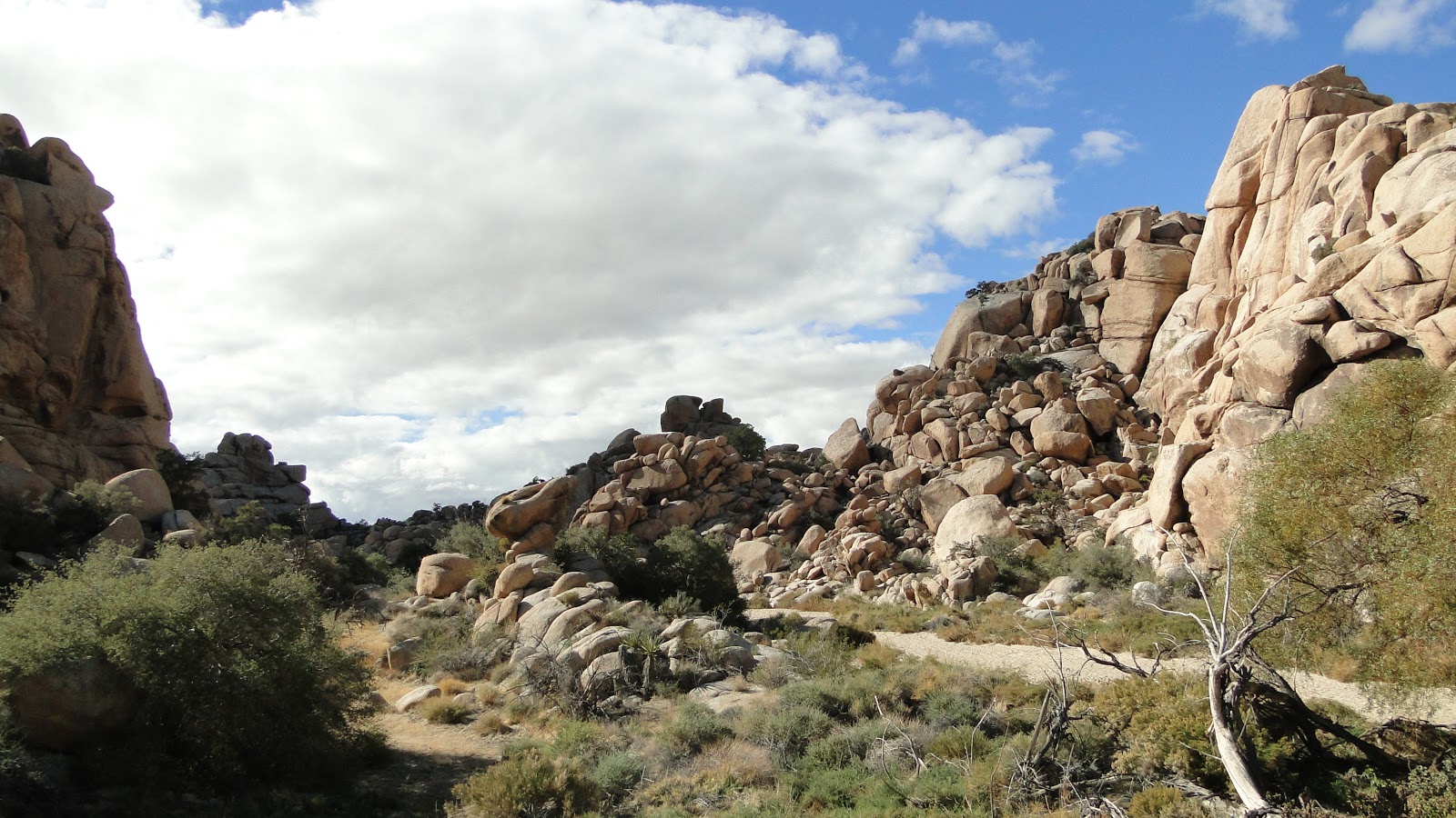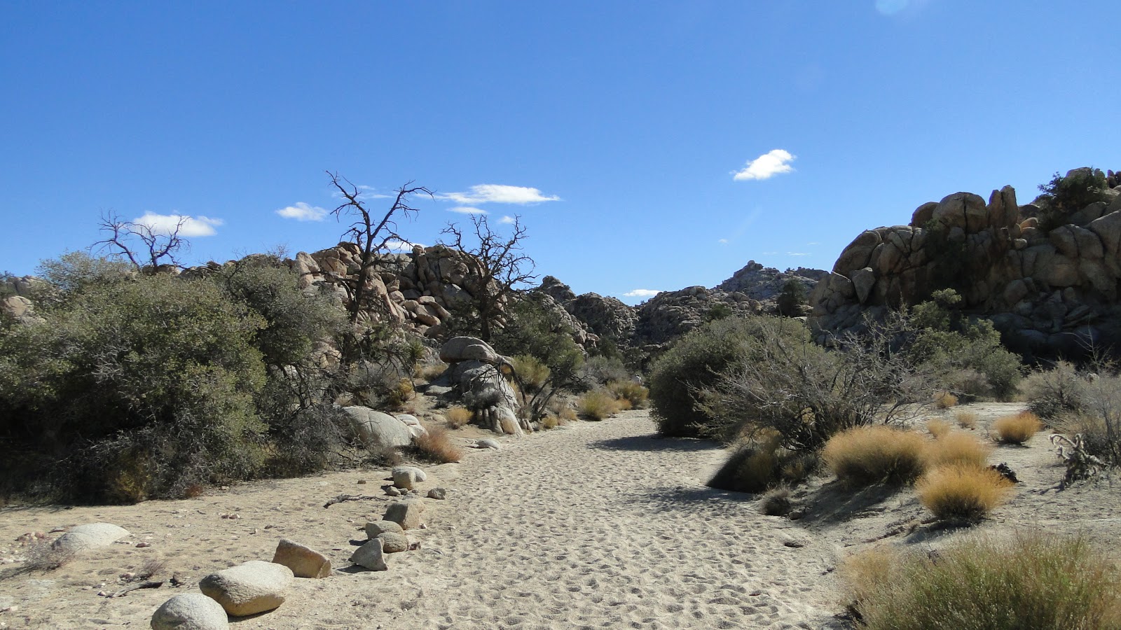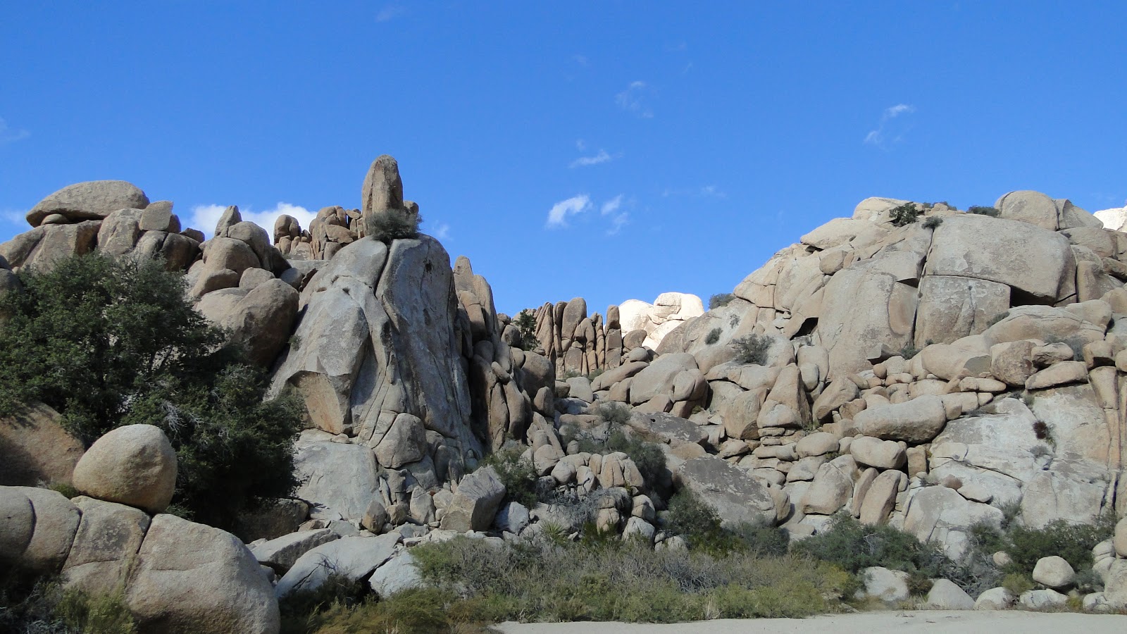 Rainfall has to flow somewhere, since the primary principle of water is that it will always flow to the lowest spot. As the water flowed, it scoured the boulders, eroding small particles (sand) away. This sand accumulated in the common channels, creating the washes. Thus was the Wonderland born.