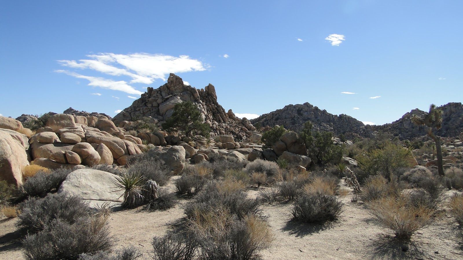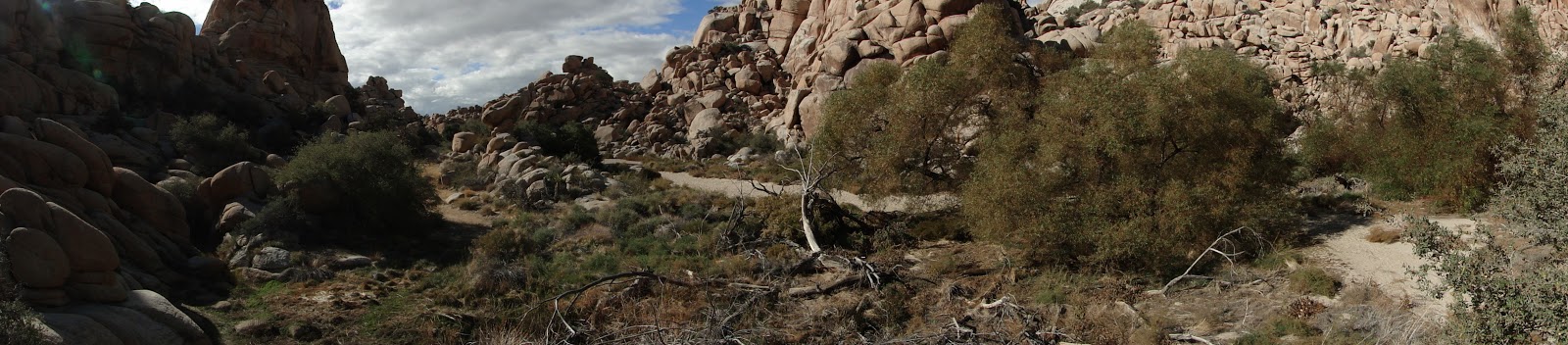 This hike starts at the Boy Scout Trailhead, which comes up right before Hemingway and Hidden Valley as you drive West to East into the park. The Boy Scout Trail cuts a straight line through classic Joshua Tree woodland. After a few miles, you reach a junction. To the right, the Boy Scout Trail continues. The option for Willow Hole goes left.
