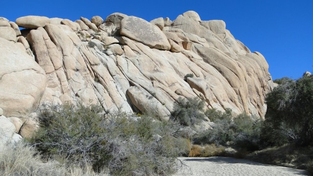 The Wonderland of Rocks is another story. This region of Joshua Tree features a bewildering maze of eroded granite blocks that is criss-crossed by a multitude of flood washes. This topography has made Joshua Tree famous, particularly among rock climbing enthusiasts.