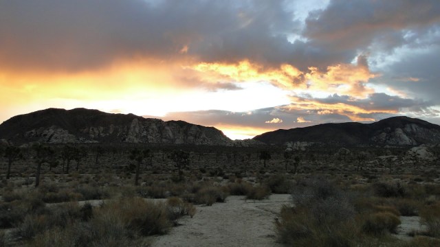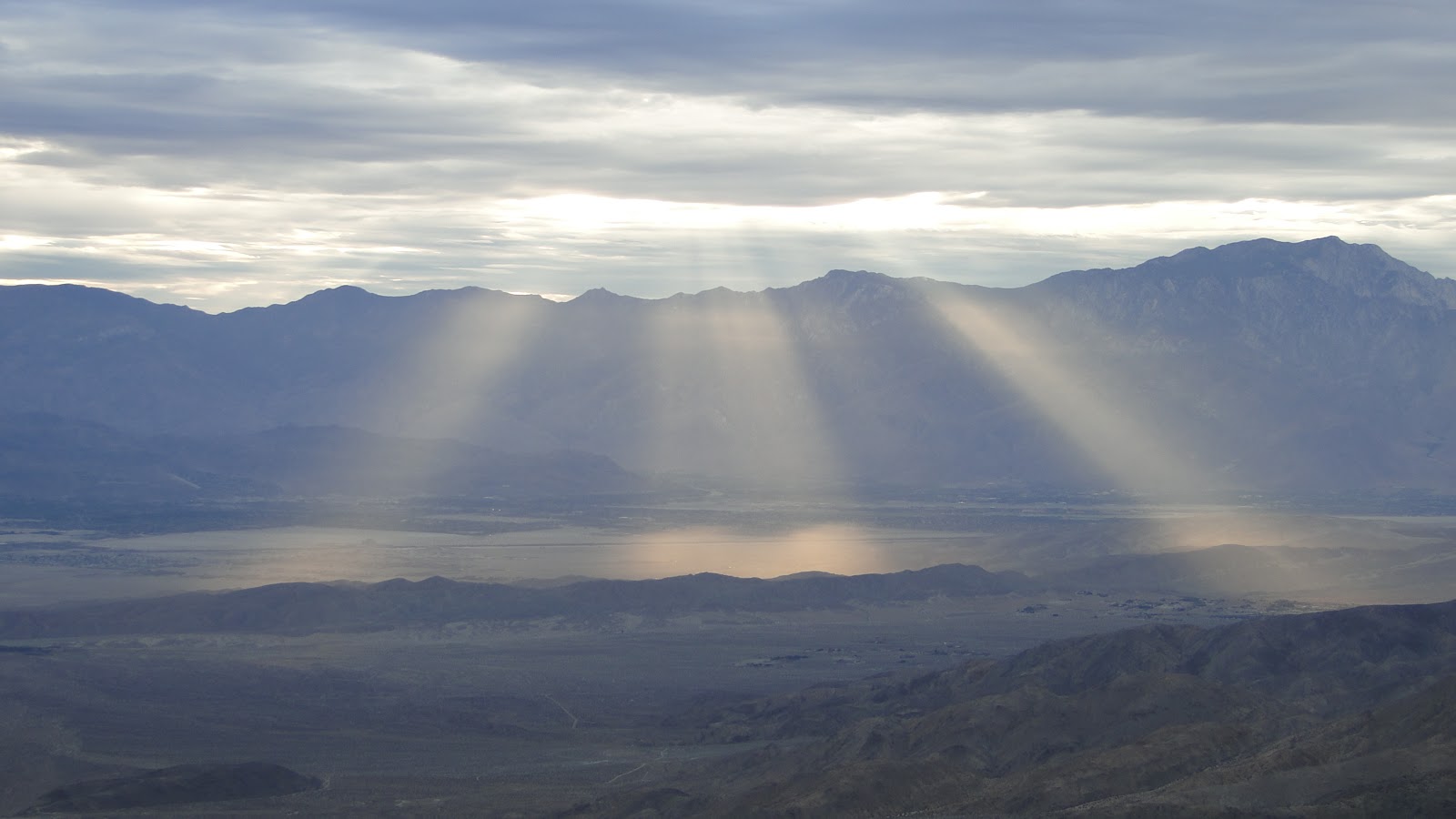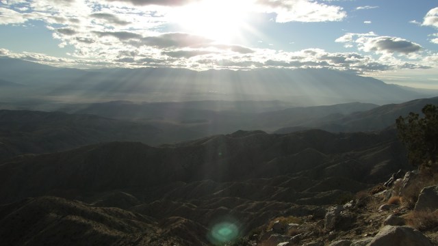 The north wall of the Coachella Valley, also known as the Little San Bernadino Mountains, cannot hold a candle to the imposing massif of Mt. San Jacinto. However, Keys View, which is a popular view point, allows the visitor a chance to see an expansive view of the Coachella Valley, along with the Salton Sea, the San Andreas Fault, Santa Rosa Mountains, San Jacinto Mountains, and Mt. San Gorgonio. On a clear day and during a sunset, you are likely to see some spectacular sites. You are also likely to see a bunch of people come and go, stopping only for a few minutes to say, “Hey, I can see the Salton Sea.” This view is not earned the way normal mountain views are, so this is to be expected. The best bet is to pull up some dirt next to a weathered old juniper bush and watch the sun sink behind Mt. San Jacinto, which I did on both evenings.