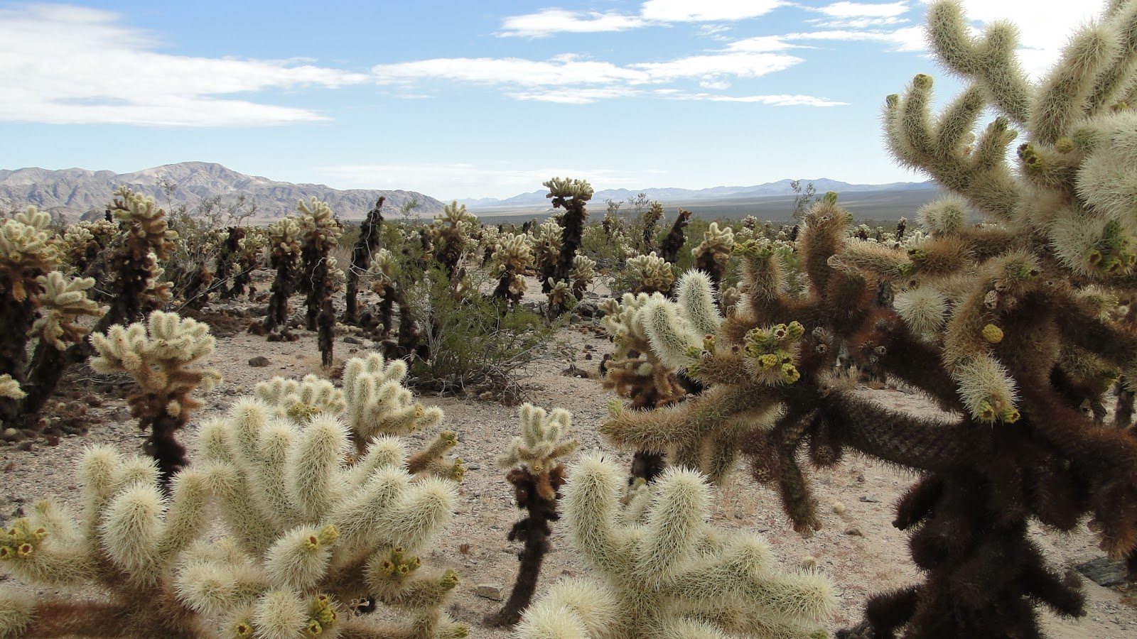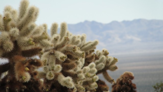 The Cholla Cactus may be one of the most pitiless, merciless plants around. It has thousands of sharp, tiny spines that have a number of scales. The scales enable the spines to grip into the victim in such a way that pulling the spines out becomes extremely difficult. This cactus is also called the Jumping Cactus because individual pods will detach when a passerby brushes against. As the pod detaches, the spines spring into the victim’s skin, leaving a sharp, spiny, bloody mess. That sad, these cacti are incredibly beautiful. I wasn’t here at a good lighting time; it was overcast. That said, you can still get a sense of how strange, beautiful, and horrible these plants are.