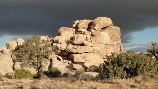 This stop on the Loop Rd. sits between the Boy Scout Trailhead (more on that later) and the Hidden Valley Trailhead and campground. There are no trails here save for what climbers have carved in order to get to the imposing Hemingway Buttress. I have no idea why it’s called Hemingway, but so it goes. In the grand scheme of all things Joshua Tree, this area is no different from the areas around Barker Dam and Hidden Valley. However, the light at this final stop in the park before I went to San Jacinto was gorgeous, and I got some good shots because of it.