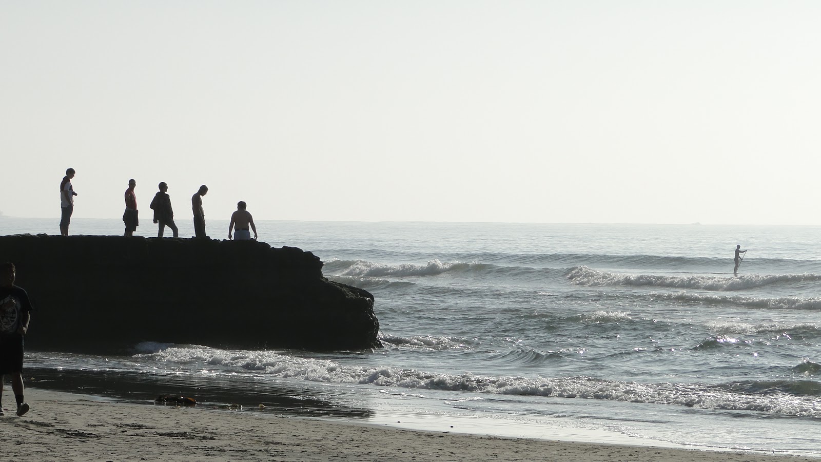 | Beach-goers frolicking on Flat Rock |