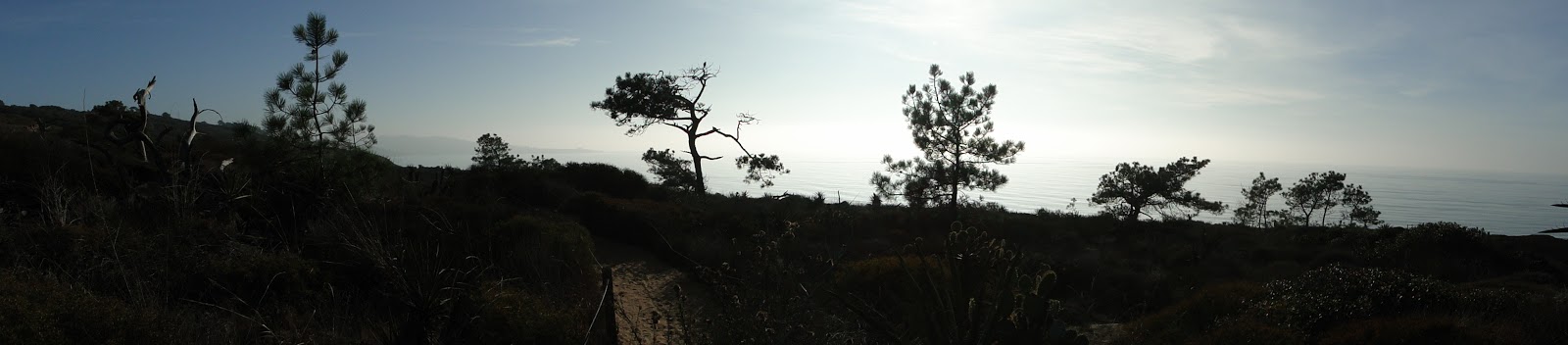 The Extension is quickly explored, yet it yields up a number of gems. The D.A.R. trail offers a thick woodland of Torrey Pines in a peaceful, sheltered ravine. This is a fine place to come for silence, since very few people seem to know about it. Also lovely is the ocean overlook that sits on a gentle promontory. From here, you can see the lagoon, the main reserve, and the endless ocean, into which the sun was sinking as I sat in silence.