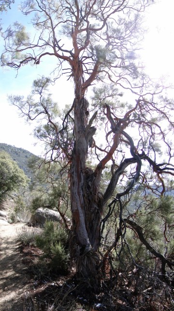 After I could no longer endure the cold, I set off for the mile-long stretch of PCT between Spitler and Apache. The trail to Spitler is easier to follow and perhaps more pleasant since it goes through the best mixed-conifer forest you’ll find on this section of the trail. However, it’s really steep, and so there’s a lot of work climbing up the 500 or so feet in the span of half a mile. The view is also more restricted, yet the presence of the coniferous trees reduces the wind and makes it more enjoyable to rest there.