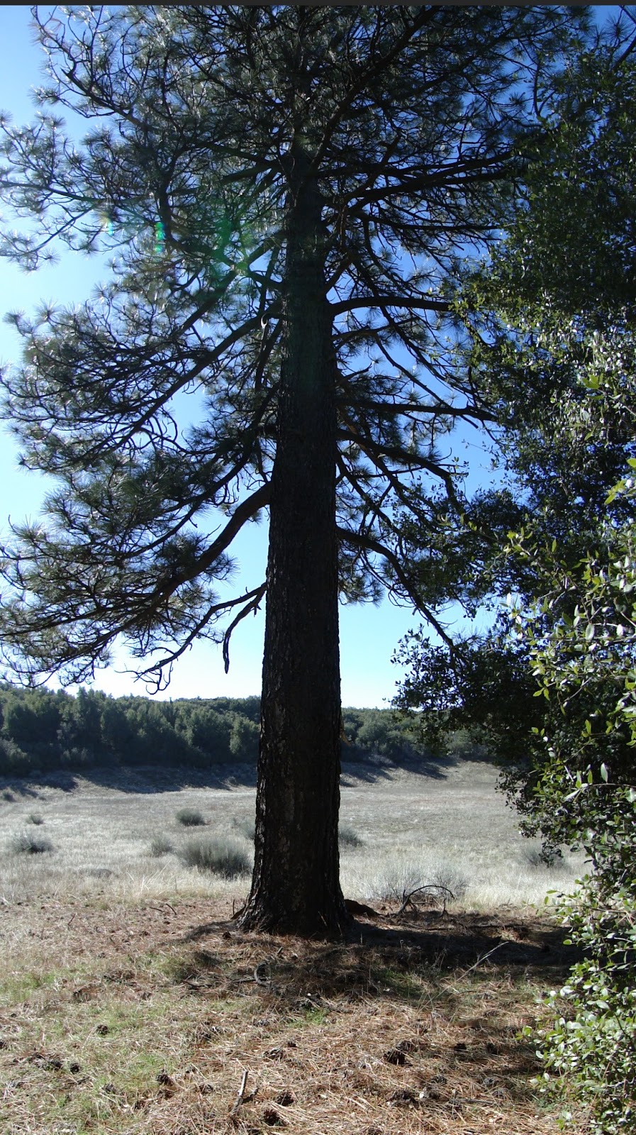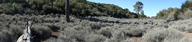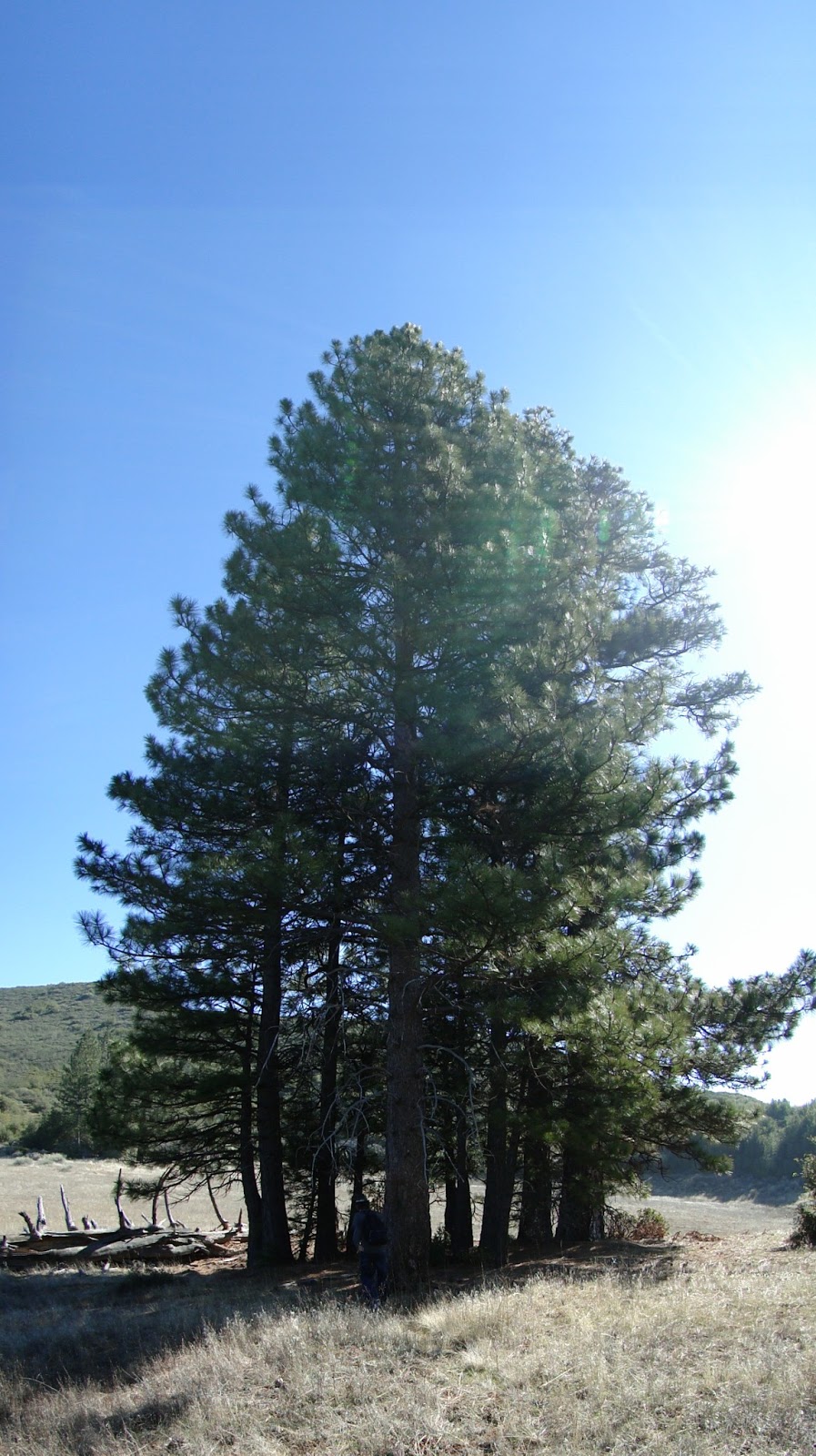 The reward for all of this huffing, puffing, cursing, and grumbling is the appearance of a dry meadow, clothed in sagebrush and studded with a handful of towering Ponderosa pines. Even with the expectation of these things being here, the revelation is a little unexpected and surprising. Pine trees are rare enough below 5,000′ in Caliornia (this ridge tops out at 4,850′), but to see them on what appears to be one of an infinite number of chaparral-covered ridges is almost preposterous.