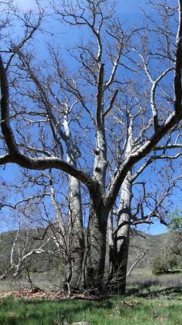 As the fire road gently winds its way down to the sea, you will pass through the afore-mentioned sycamore savannas. This rare habitat occurs since the flat bottom of the canyon has a very high water table, due to the presence of the stream bed. This high water table provides abundant moisture for sycamores, which grow very tall and very old in this area. Smaller ash and laurel sumac trees crowd along the road, providing a bright green color display. Along the periphery of the canyon, bands of coast live oak shade the trail before giving way to hills covered in coastal sage-scrub.