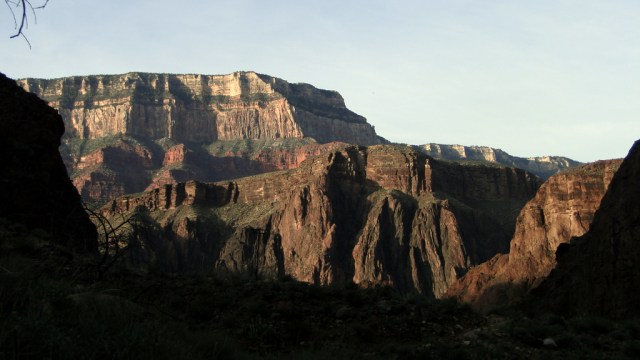 As we wrapped our long day of hiking up to the North Rim, we settled back down at our campsite, with Kyle collecting clear drinking water and with me giving myself a Dr. Bronner’s Nalgene bath. The plan for the next morning was to hike 12 miles from Cottonwood Campground to Indian Gardens Campground. From there, it would be a relatively modest 4.8 miles back up to the rim and along on our merry ways back to civilization. During the initial planning, I figured a 12 mile day after a 17 mile day would be more than enough, and a stop in Indian Garden for the night would stretch the overall hiking out to a more comfortable measure.