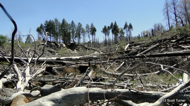 By the time the fire had finished its work, approximately 90-95% of what was once the greatest forest in San Diego County had been thoroughly incinerated. Smoking debris lay underneath a blackened ghost forest. Wildlife, which had always been abundant in the Cuyamaca area, seemed to vanish. The fire became what it became due to perfect storm-type conditions. However, those conditions had been years in the making, as drought and fire suppression tactics led to more dead trees and a lack of proper ways to clear the debris. The Forest Service had forbidden any fires from burning for years, and yet periodic fires are necessary to clear out the debris that builds up underneath the forest canopy. While the Santa Ana conditions were predictable, the condition of the forest was at least partially due to man.