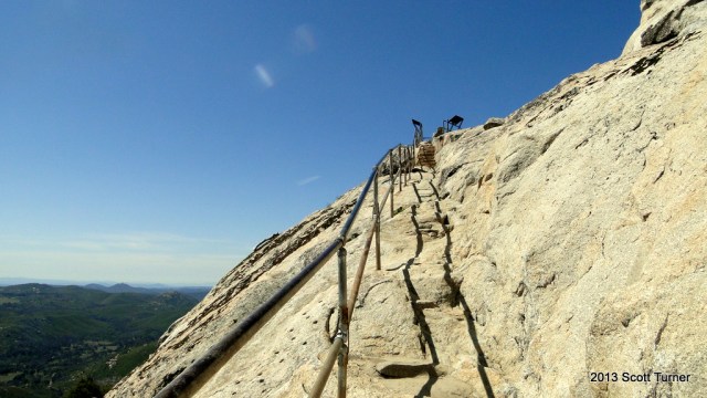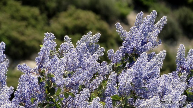 The trail from the campground is well-maintained. It switchbacks steadily up through dense stands of ceanothus and manzanita. There are a number of skeletal-looking dead oak trees that are sending up new shoots from their still-living roots. Eventually, these new shoots will grow into new trees around the dead trunks, which will eventually topple and decay back into the soil. In this way, the oaks of Cuyamaca at least are making a strong comeback. Meanwhile, the ceanothus persists in putting out brilliantly blue flower clusters that smell strongly of honey.
