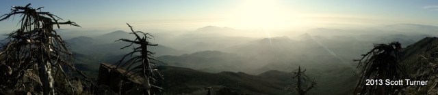 The sunset was rewarding, even though I didn’t linger for the afterglow and the color changes. Simply watching the sun sink into the marine layer from 6,500′ is an impressive enough experience. However, I didn’t relish the idea of walking 2.5 miles back to camp in the dark by myself. I’m willing to do all sorts of things alone, but I draw the line at hiking through a forest when I can’t see anything, and I have nobody with me.