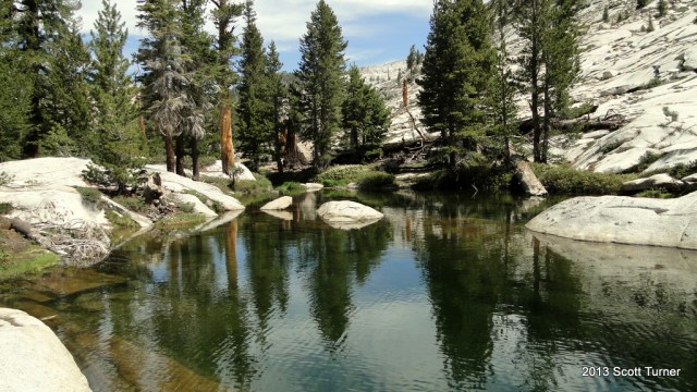 After crossing the creek that drains Heather Lake, the trail winds up and over a ridge separating this glacial basin from the next. In the next basin, Asther and Emerald Lake await. Asther is less accessible, and unless you want to do some boulder hopping, the best way to enjoy it is from above. Emerald Lake is more accessible, and it is here that the Park Service has built a restroom and a scattered campground with bear lockers. This isn’t exactly remote backcountry camping, but bear lockers and restrooms are nice conveniences to have around. I saw a few campsites, but no people while traveling through here.