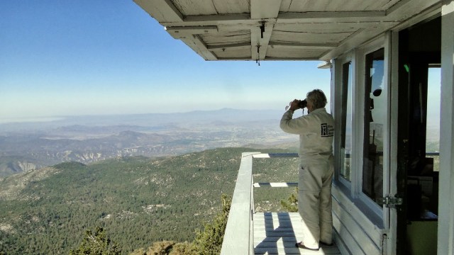 This lookout tower is the third built on this spot (the first two burnt down). It covers a vast section of the southern district of the San Bernadino National Forest. At a point during the 80’s or 90’s, most fire lookouts went out of vogue, likely because of the cost of upkeep and staffing. The government figured that satellites would be more effective spotting fires. However, you can’t just ask a satellite to be in one place when you want it, and so a lot of fires were being missed. Turns out that there’s no substitute for a set of eyes and a pair of binoculars.
