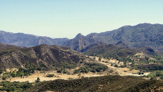 | Paramount Ranch in the foreground, with Malibu Creek State Park and Castro Crest in the background. |