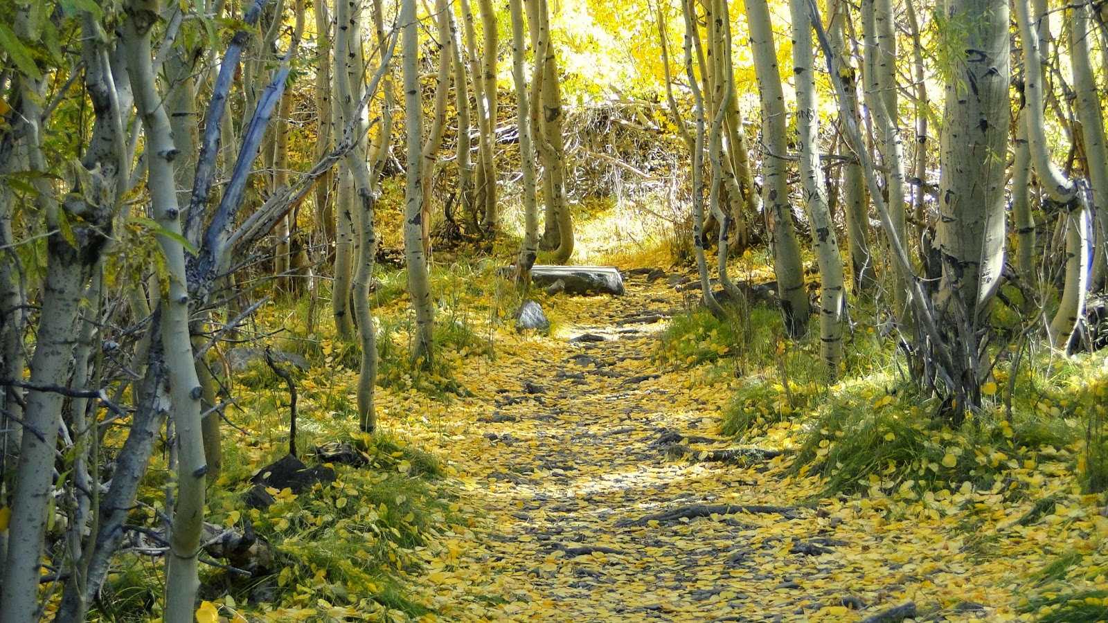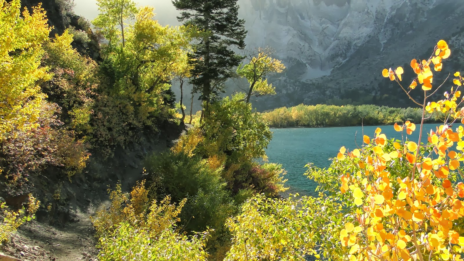 Convict Lake is a subalpine lake about 15 minutes south of the town of Mammoth Lakes. In addition to a network of trails extending into the mountains above the lake, there is a fun and rewarding 3.3 mile loop circumnavigating the lake. While this lake differs from the usual alpine lakes of the High Sierra, is does feature a spectacular marshy section with a boardwalk and a dense forest of aspens and cottonwoods, both of which were awash in fall color.