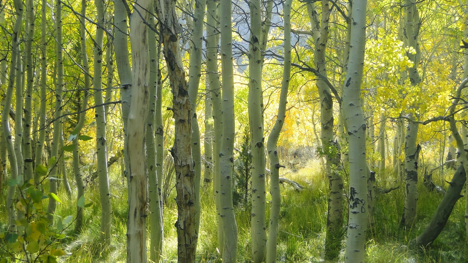 The lake sits within a glacial bowl, and the slopes rise several thousands of feet above the lake on all sides. On the west end of the lake, several streams drain into the basin, all converging in a sort of delta that supports a dense thicket of riparian vegetation, including aspens, cottonwoods, and numerous grasses. This brief segment of the trail was delightful, and I could easily imagine myself content to sit in a shady grove of aspens and read for several hours.