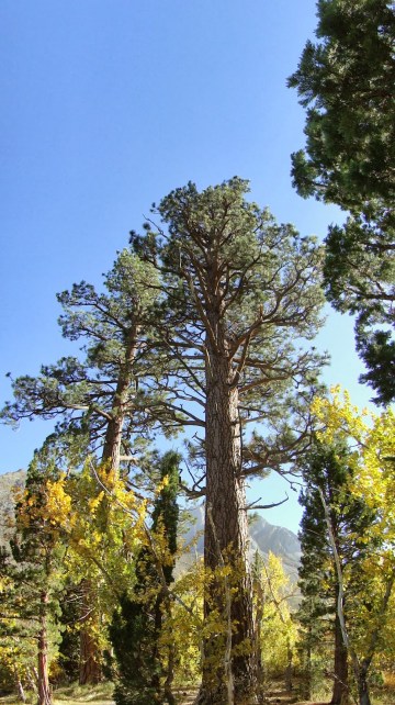 After a morning full of fall color, I came upon a National Forest campsite that had its gate open. I drove in, and to my surprise saw several different groups camping. I figured, hey, the Forest Service must be letting some things slide, and so I set up camp underneath a small grove of Jeffrey pines.