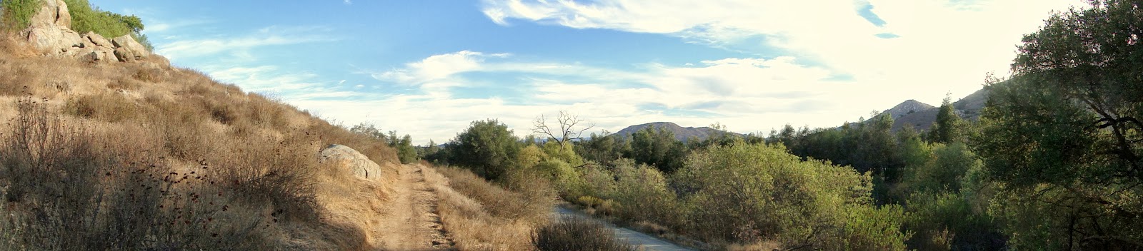 The Highland Valley Trail parallels Highland Valley Rd. on the south side of the San Dieguito River valley. The trail is never far from development, and the sites and sounds of civilization are omnipresent, yet this is an enjoyable and tranquil trail through grasslands, oaks, and along a stream.