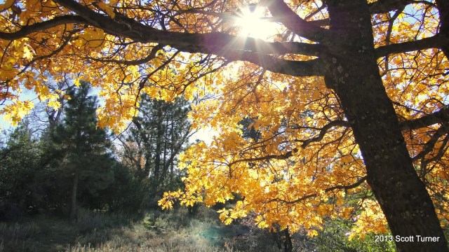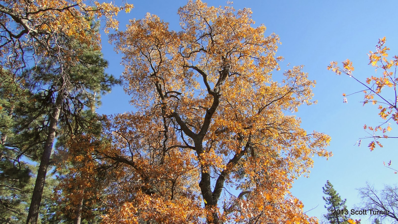 I got here on the tail-end of the peak for fall color. Most of the black oaks that haven’t succumbed to the gold-spotted oak borer were sporting just a fraction of their leaves. Recent gusty winds from east and west had stripped most of the trees clean, but there were enough trees still cloaked in gold to make this a rewarding fall color experience. I’ll grant that the fall color here doesn’t touch New England or even the Eastern Sierras, but there is still a lovely, if somewhat muted array of colors to experience here.