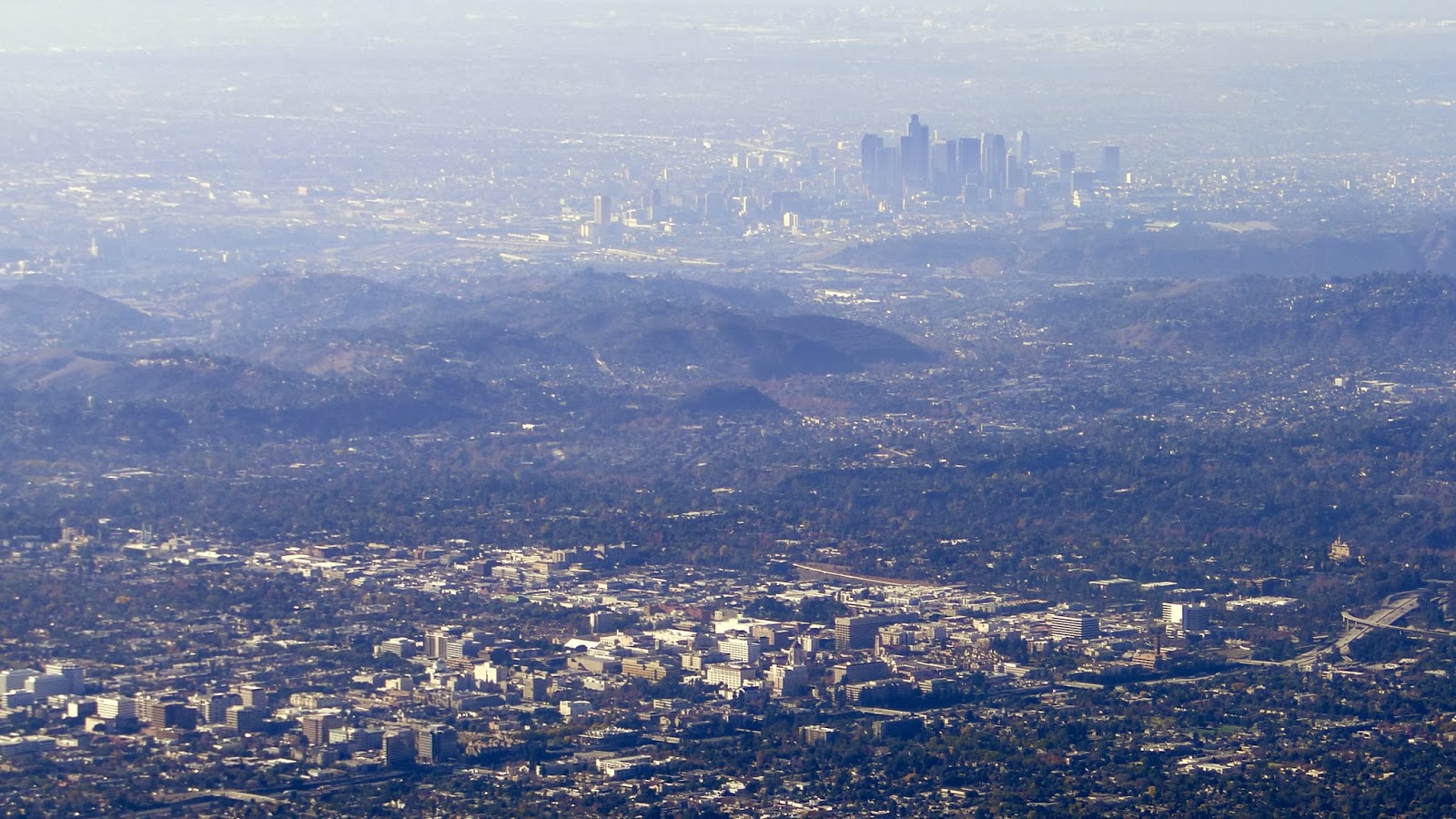 | The Santa Ana Mountains, with the Palomar Mountains indistinct in the background to the left. |