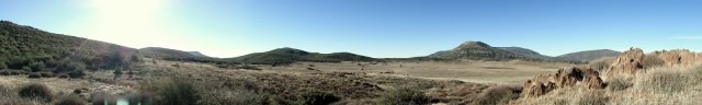 Today’s loop took me along the wide-open meadows east of Lake Cuyamaca via the Soapstone Grade, which is so named because of the chunks of soapstone left lying about all over the place. The road dates back to the mining boom that first established white people in this region. Interestingly, the meadows here used to be densely forested in the same way that the Laguna Mountains are forested. As the mining boom hit, timber was needed, and so a meadow was born.