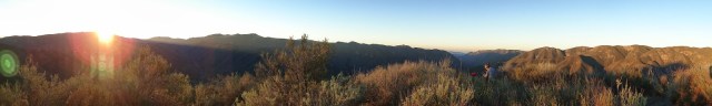 After a surprisingly restful night of sleep (hint: wrap a bandana over your eyes), we were up before the sun to tackle an excruciating 1,300′ ascent over 1.5 miles. We made it up to the top of the ridgeline just in time to watch the sun rise over the east rim of the canyon. San Mateo Canyon is shockingly deep for something so close to the edge of civilization, and it is astonishing to think that a canyon 2,000′ deep is sitting just on the other side of Camp Pendleton. The sunrise illuminated the rolling hills in a soft, orange glow, making the chaparral look almost plush. An illusion, of course, as most chapparal species are brittle, hard, and frequently scratchy.