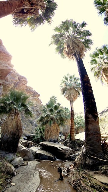 The tropical feel of these canyon bottoms is largely created by an abundance of native California fan palms, which I wrote about here. These oases are not common in Southern California, occurring mostly in the Coachella Valley, Anza-Borrego Desert State Park, and in a few places in Joshua Tree National Park. As these particular oases are on Native American reservation land, they remain well-protected from the intrusions of modern civilization.